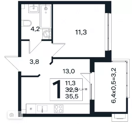 Продается однокомнатная новостройка, 35.5 кв.м., 1/4 эт