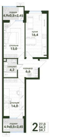 Продается 2-х комн. новостройка, 59.1 кв.м., 1/4 эт