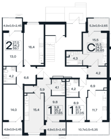 Продается 2-х комн. новостройка, 59.1 кв.м., 1/4 эт