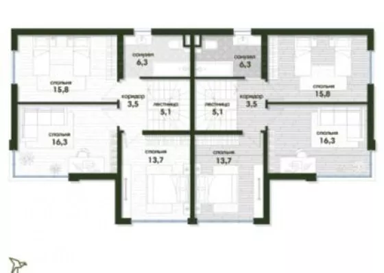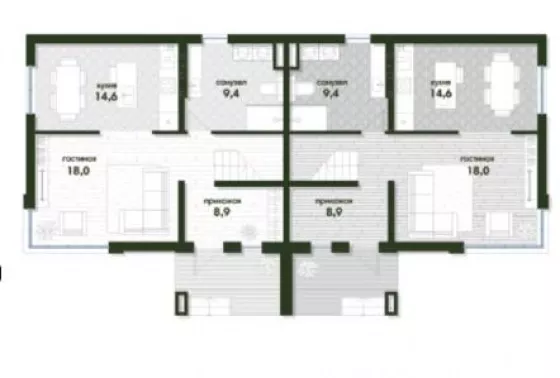 1 этаж: кухня, гостиная, большой санузел, прихожая. 2 этаж: три спальни, свой санузел, во дворе парковочное места. 3 этаж: эксплуатируемая крыша.