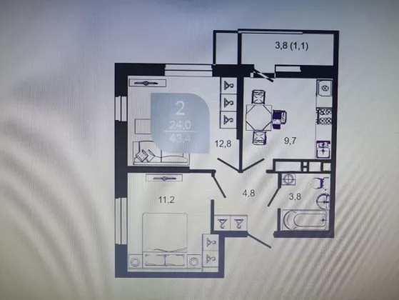 Продается 2-х комн. новостройка, 43.4 кв.м., 6/24 эт