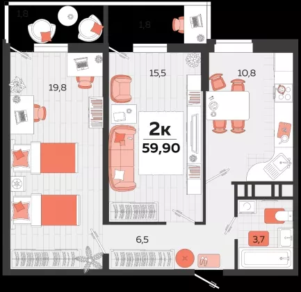 Продается 2-х комн. новостройка, 59.9 кв.м., 15/24 эт