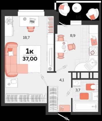 Продается однокомнатная новостройка, 37 кв.м., 8/24 эт