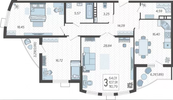 Продается 3-х комн. новостройка, 110.84 кв.м., 16/21 эт