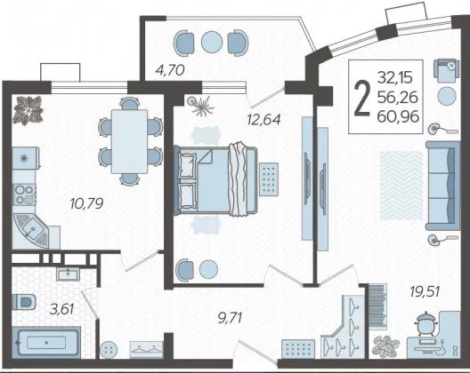 Продается 2-х комн. новостройка, 60.96 кв.м., 10/21 эт