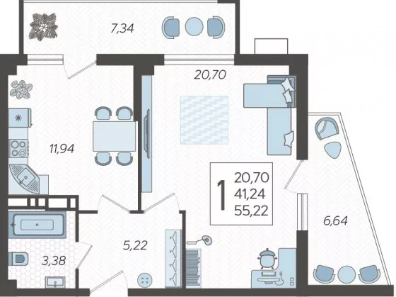 Продается однокомнатная новостройка, 50.22 кв.м., 11/21 эт