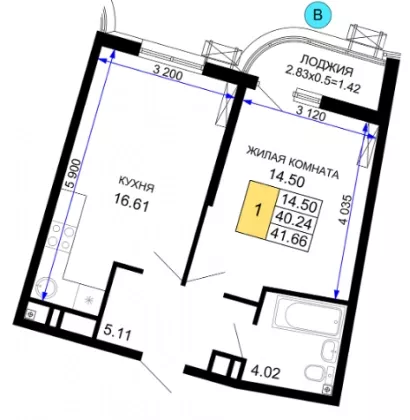 Продается однокомнатная новостройка, 41.66 кв.м., 15/24 эт