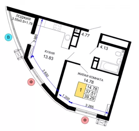 Продается однокомнатная новостройка, 39.29 кв.м., 20/24 эт