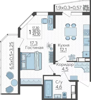 В продаже прекрасная 1к квартира в новом, современном комплексе класса комфорт+.