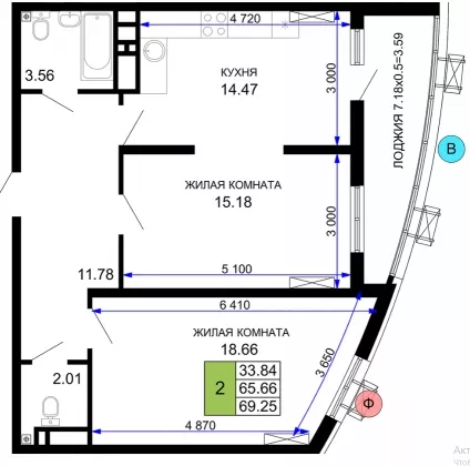 Продается 2-х комн. новостройка, 69.25 кв.м., 24/24 эт