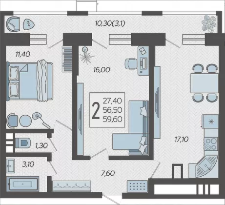 2к квартира улучшенной планировки в новом комплексе класса комфорт+.