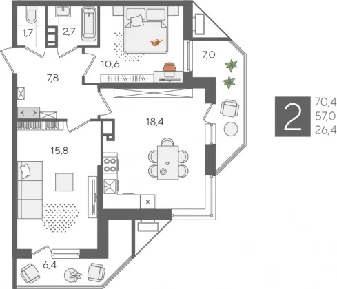 Продается 2-х комн. новостройка, 71 кв.м., 16/24 эт