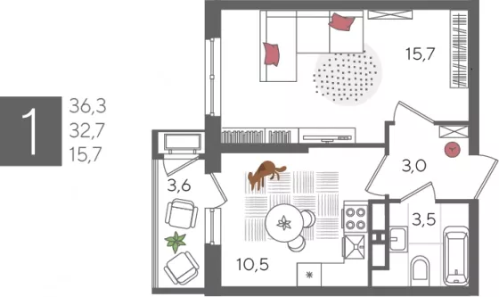 Продается однокомнатная новостройка, 37 кв.м., 20/24 эт