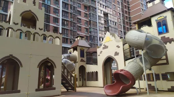 На территории комплекса есть все для максимально комфортного проживания: фитнес с бассейном, подземный и многоуровневый наземный паркинг с зарядками для электромобилей, детские и спортивные площадки для разных возрастов, фонтаны, ресторанный дворик с аллеей...