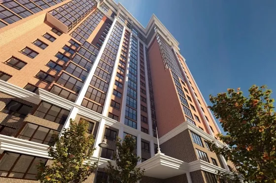 На территории комплекса есть все для максимально комфортного проживания: фитнес с бассейном, подземный и многоуровневый наземный паркинг с зарядками для электромобилей, детские и спортивные площадки для разных возрастов, фонтаны, ресторанный дворик с аллеей...