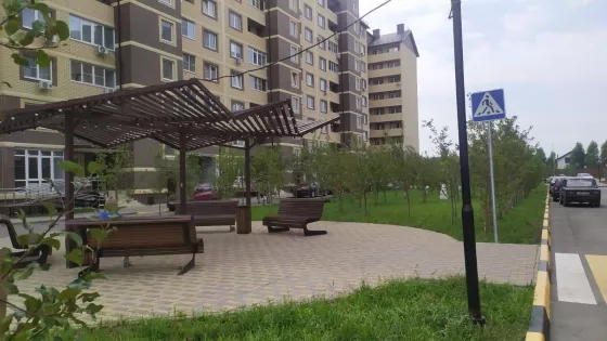 - Очень уютный спальный район с фруктовыми деревьями на территории комплекса!