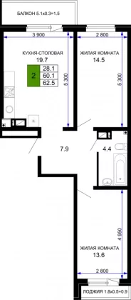 Продается 2-х комн. новостройка, 57 кв.м., 9/16 эт