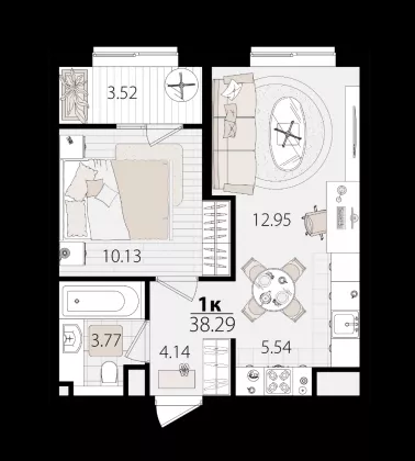 Продается однокомнатная новостройка, 39 кв.м., 7/9 эт