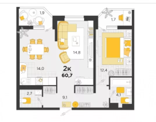 Продается 2-х комн. новостройка, 60.7 кв.м., 14/23 эт