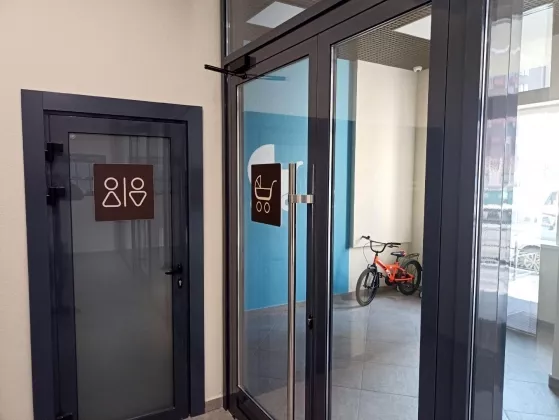 Просторные дворы с детскими и спортивными площадками, красивые входные группы, в каждом подъезде колясочная, лапомойка, туалет.