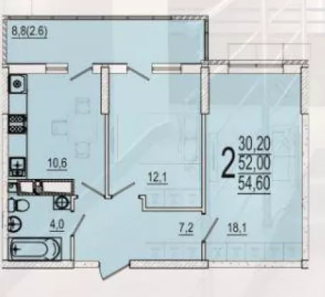 Продается 2-х комн. новостройка, 54.6 кв.м., 11/23 эт