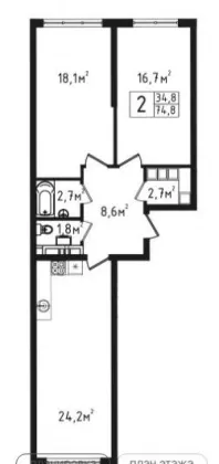 Продается 2-х комн. новостройка, 70 кв.м., 2/9 эт
