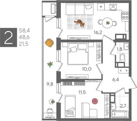 Продается 2-х комн. новостройка, 60 кв.м., 2/24 эт