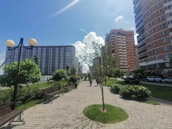 Выйдя с территории жк вас встречает прекрасная зеленая аллея с фонтаном и зонами отдыха!