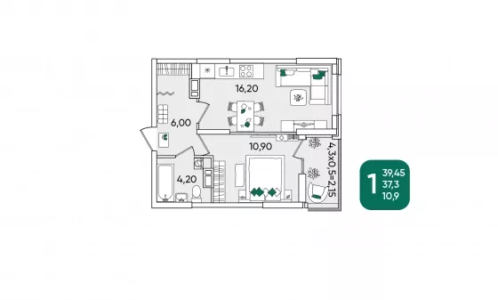 Продается однокомнатная новостройка, 41 кв.м., 11/24 эт