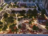 Выйдя с территории жк вас встречает прекрасная зеленая аллея с фонтаном и зонами отдыха..