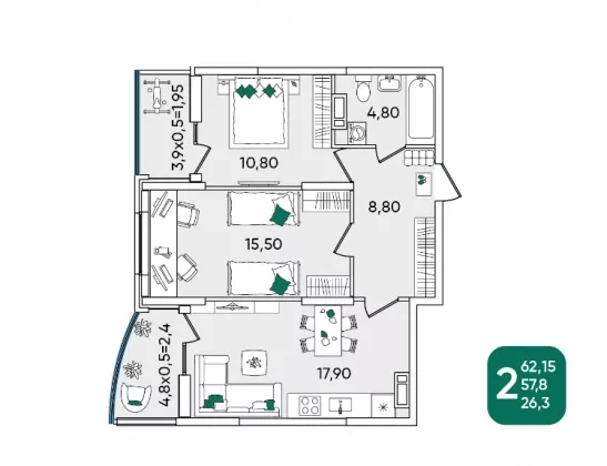 Продается 2-х комн. новостройка, 67 кв.м., 18/24 эт