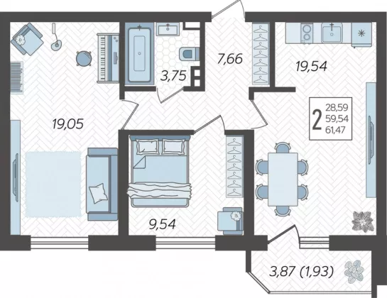 Продается 2-х комн. новостройка, 61.47 кв.м., 11/23 эт