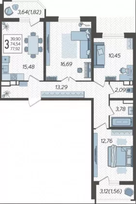 | Площадь, кв.м. | 77.92 |