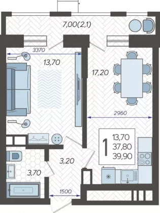 Продается однокомнатная новостройка, 39.9 кв.м., 3/12 эт