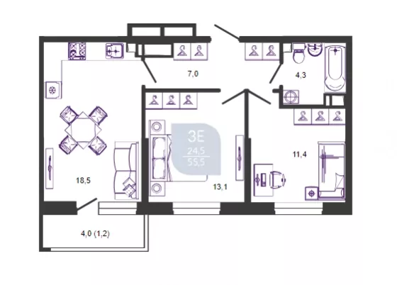 Двухкомнатная квартира евроформата в 10 минутах от парка Краснодар.