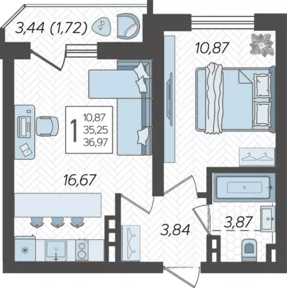 Продается однокомнатная новостройка, 39.97 кв.м., 19/23 эт