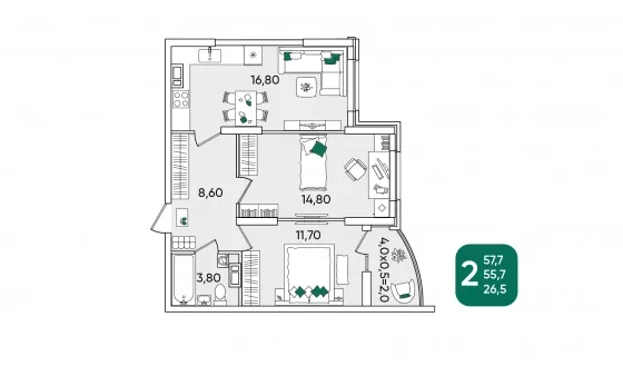 Продается 2-х комн. новостройка, 60 кв.м., 5/24 эт