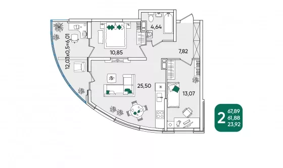 В избранное двухкомнатная квартира