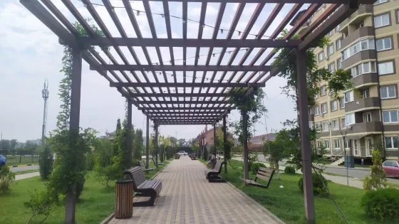 - Очень уютный спальный район с фруктовыми деревьями на территории комплекса!