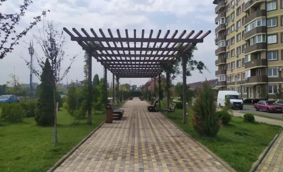 - Очень уютный спальный район с фруктовыми деревьями на территории комплекса!