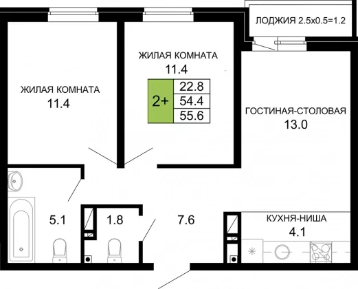 Продается 2-х комн. новостройка, 57 кв.м., 5/16 эт