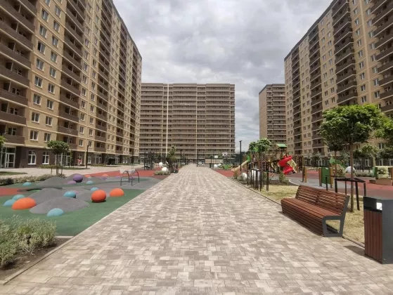 - Очень уютный спальный район с фруктовыми деревьями на территории комплекса!
