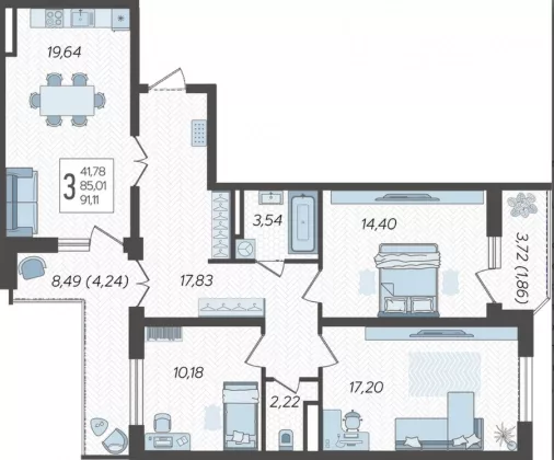 Продается 3-х комн. новостройка, 91.11 кв.м., 10/23 эт