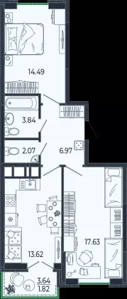 Продается 2-х комн. новостройка, 65 кв.м., 4/21 эт