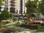 Выйдя с территории жк вас встречает прекрасная зеленая аллея с фонтаном и зонами отдыха..