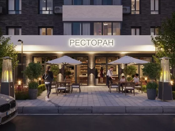 С внешней стороны комплекса коммерция с ресторанами, магазинами, салонами красоты и многим другим!