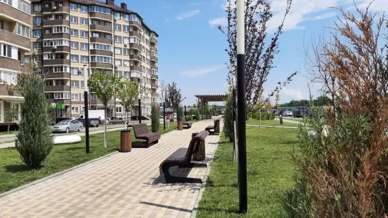 - Очень уютный спальный район с фруктовыми деревьями на территории комплекса!!!