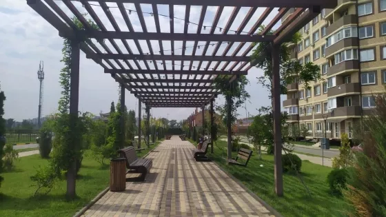 - Очень уютный спальный район с фруктовыми деревьями на территории комплекса!!!