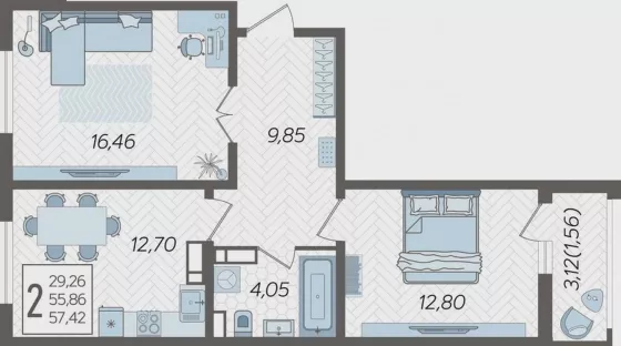 Продается 3-х комн. новостройка, 57.4 кв.м., 12/23 эт