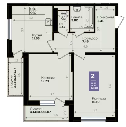 Продается 2-х комн. новостройка, 60.8 кв.м., 18/24 эт
